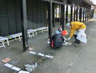 ≪大型のごみ≫ ・50cmを超える列車のおもちゃ(モーター駆動、重い)、プチプチシート1 ・10月20日に予定していたが、雨で27日に延期。都合が合わない会員が多く3名の参加に留まり残念だった。 ・今回は、ゴミ分別をスムーズにするために、ゴミの大分類と細分類47項目を書いたボードを用意、ボードを地面に並べて、各自拾ったゴミの分別先がわかるようにした(好評)。プラスチックシートと袋の破片類は特に多く、風で飛散しやすいのでバケツを用意し、その中に入れるようにした(他にも分別容器を用意)。 ・昼頃から雨予報が出ていたので、ゴミの分別は、屋根付きの休憩施設がある弁天歴史公園(車で5分ほどの場所)へ移動して行った。今回は、参加人数が少なくゴミの量も少なかったので、事前の利用予約をとらなかったが、大人数の場合は手続きが必要になると思われる。 ・清掃実施場所は、一見、目につくゴミはほとんどないが、砂に埋もれた破片ゴミが多く、マイクロプラスチックの源になっている。海が荒れる時は、波がかぶる場所であり、実際、汀線には破片プラスチックが確認でき、漂着した可能性を含め、海洋へ流出していることを強くうかがわせる。 |