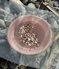 ・立春も経過し、これからは少なくなるか? ・投棄か漂着か不明のゴミあり。 ・近くの砂浜(ゴミ多部)にてマイクロプラ測定。PS175個、肥料被覆プラ6、軽石、植物片非常に多い |