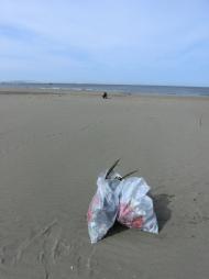 | 感想・意見・特記事項 | ・ 今年4回目となるが、参加者は3人のみだった。ゴミを集めた後、分類してカウントする作業が面倒だと感じている会員が多いのかもしれない。ゴミを拾ってきれいにすることにやりがいを感じる人は多いと思う。次年度は、清掃エリアと調査エリアを分けて、ゴミ拾いのみしたい人が活躍できるようにしようと思う。・調査場所は昨年と同じ三線浜で、調査区も昨年とほぼ同じ場所であるが、見渡してゴミの多そうな所を選んだ(焚き火跡があるバーベキューをしたと思われる場所で、飲料缶が散乱)。50〜60cm長の木片6個(焦げ跡がついたものもあり)は焚き火用のものであろう。・今回は、砂の中からワイパー、ネジ釘、金具等の金属ゴミが多数出てきた。これらは砂浜に積極的に埋めて捨てたと思われる。紙おむつが出てくることもあるので、砂浜をゴミ捨て場だと勘違いしている人は多いと思われる。・今回も、砂の中からプラ系袋ゴミが多数出てきた。ちぎれやすくなっており、放置されればマイクロプラスチック化することは明らか。三線浜は、プラゴミ汚染が進行中で蓄積化していると考えられる。大波が来た時、海洋へ放出され、海洋汚染を引き起こすので、レジャーゴミ由来の汚染源とも言える。三線浜は、漂着ゴミもあるが、レジャーゴミの方が多いように思われる。・昨年作成した、ゴミの大分類と細分類47項目を書いたボードを用意、ボードを地面に並べて、各自拾ったゴミの分別先がわかるようにしたので、分類作業は割りとスムーズだった。・集めたゴミの重量:金属ゴミ(ワイパー、ネジ釘、金具等) 3.35kg、木片1.3kg、燃えないゴミ(アルミ缶・ガラスびん等) 2.4kg、燃やせないゴミ(プラ系ゴミ) 2.45kg, 合計 9.5kg・活動時間は、10:00〜12:15で、そのうちゴミ収集時間は40分間、11:00〜12:15はゴミの分類・カウントを行った。 |