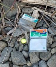 ・海岸に降りるのに一苦労、今年はえらく多く茂っている。今回は細かなごみが目についた。 ・釣り具(3片)は毎度のことだが生分解性プラを使うべきである。 |